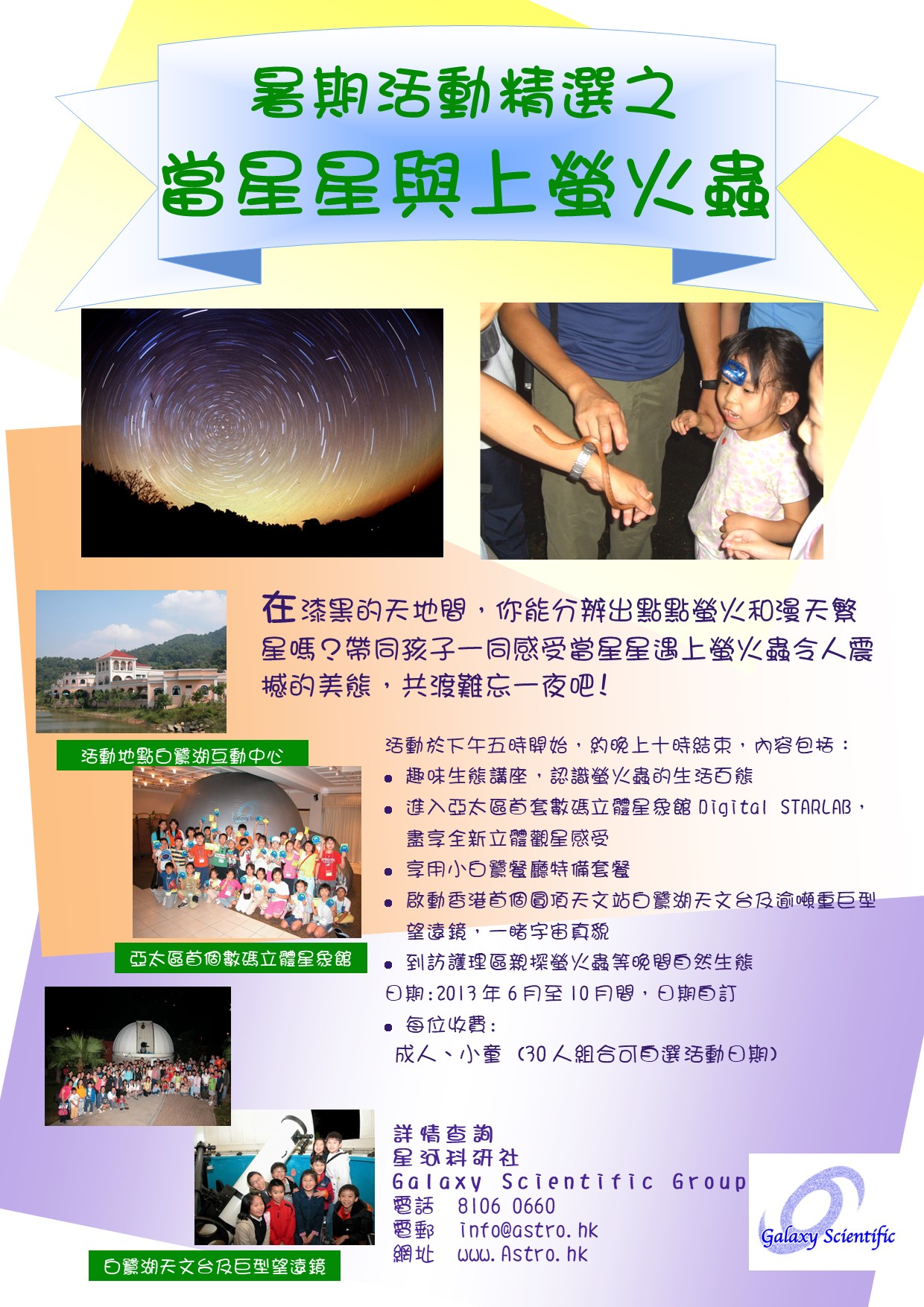 在漆黑的天地間,你能分辨出點點螢火和漫天繁星嗎? 帶同孩子一同感受當星星遇上螢火蟲令人震撼的美態,共渡難忘一夜吧!